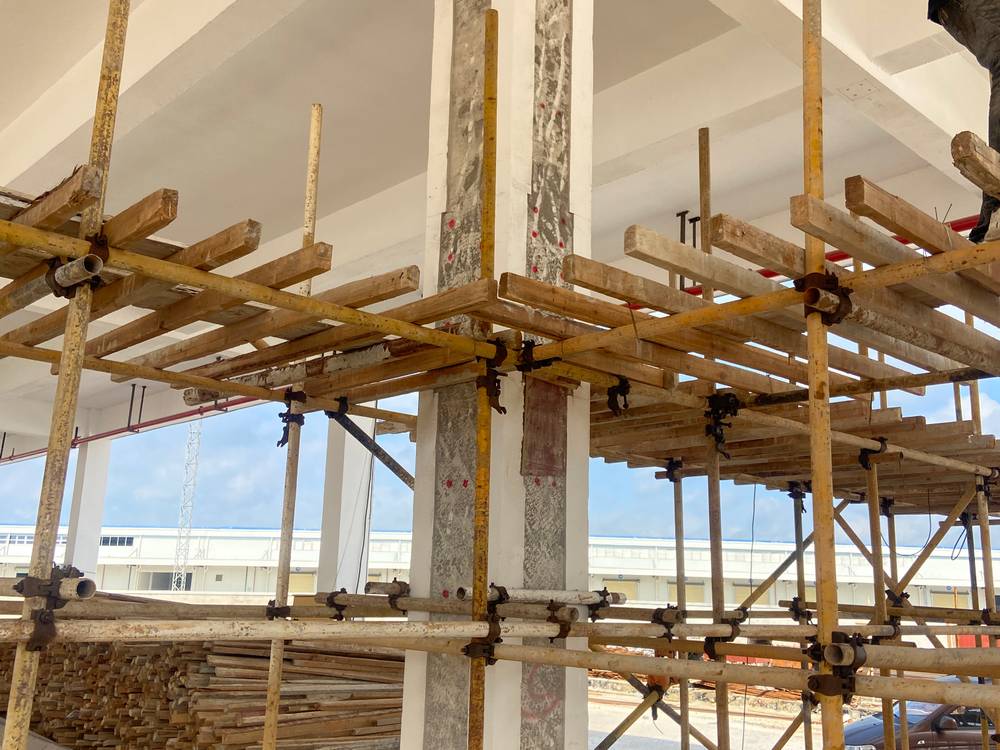3. 新增柱的施工:新增柱的施工相對復(fù)雜,需確保柱腳與基礎(chǔ)或樓板的牢固連接。采用植筋技術(shù)時,需在基礎(chǔ)或樓板預(yù)定位置鉆孔,植入多根鋼筋形成柱腳鋼筋籠,再澆筑混凝土形成柱體。此過程中,需特別注意植筋位置的準確性、鋼筋籠的穩(wěn)固性及混凝土澆筑的密實度,以確保新增柱的承載能力和穩(wěn)定性。
