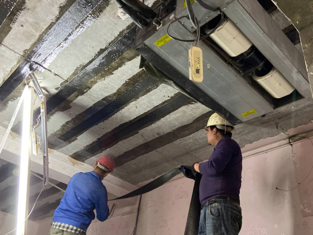加固承重構(gòu)件:對(duì)承重梁、柱進(jìn)行包鋼、粘鋼、碳纖維布加固等處理,提高其承載能力。施工時(shí)應(yīng)嚴(yán)格控制材料質(zhì)量,確保加固效果。
